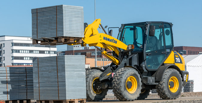 Zur Standardausrüstung aller Kompaktradler von Komatsu gehört der leicht bedienbare, markenkompatible hydraulische Schnellwechsler.