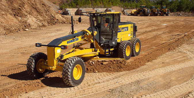 Das exklusive duale Getriebe des GD675-6 von Komatsu wurde speziell für Motor-Grader entwickelt und trägt zu einer Kraftstoffeinsparung von bis zu 15% bei. Ein echter Wettbewerbsvorteil! Der GD675-6 Motor-Grader von Komatsu hat den längsten Radstand in dieser Maschinenklasse und eine außergewöhnliche Präzision bei der Oberflächenbearbeitung.
