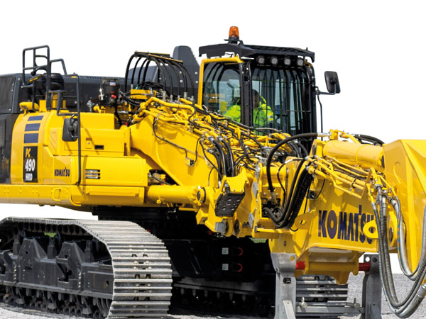 Das K100-Ausleger-Wechselsystem ergänzt diese Möglichkeiten jetzt um den Vorteil der einfachen Anwendung. Die Umrüstung der Maschine erfordert keinen manuellen An- und Abbau schwerer Hydraulikschläuche und keine Arbeiten in großer Höhe. Wird das volle Potenzial des PC490HRD-11 mit K100-Ausleger-Wechselsystem ausgeschöpft, ist nicht einmal eine zusätzliche Maschine für Aufräumarbeiten notwendig.