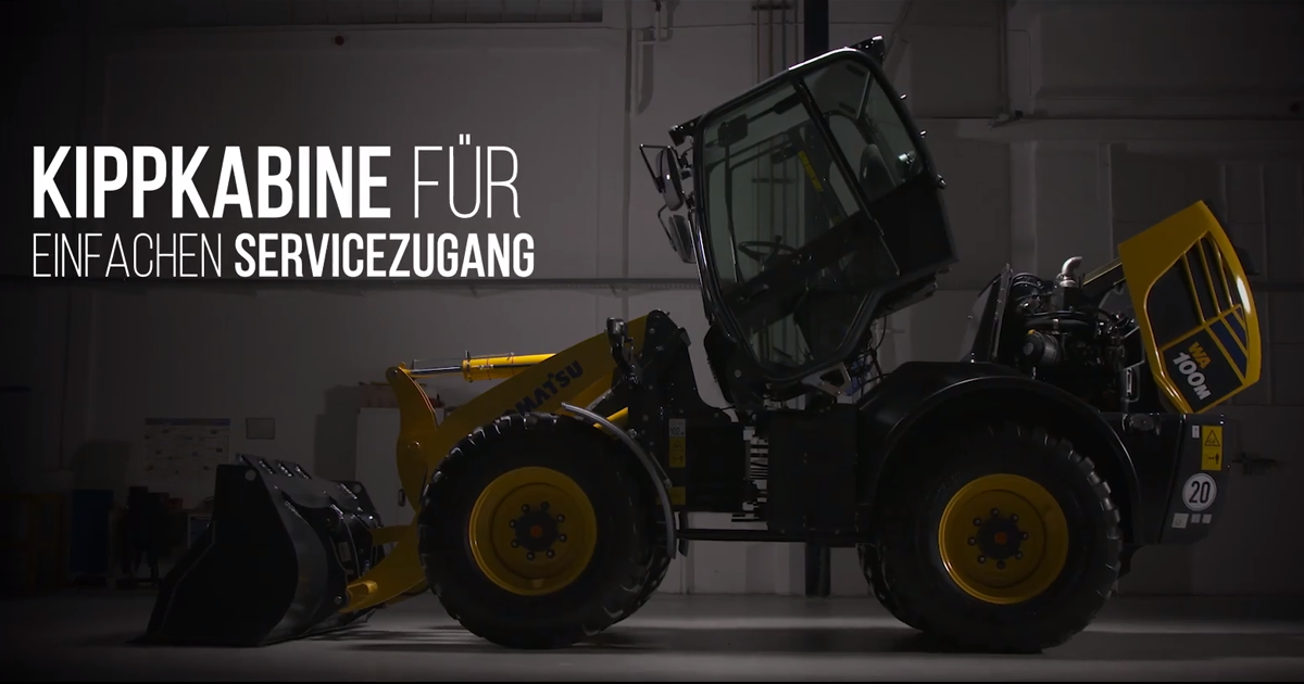 Die Kompaktradlader von Komatsu bestechen durch optimalen Wartungszugang: Nach dem Aufklappen der Kippkabine ist die gesamte Maschine perfekt zugänglich.