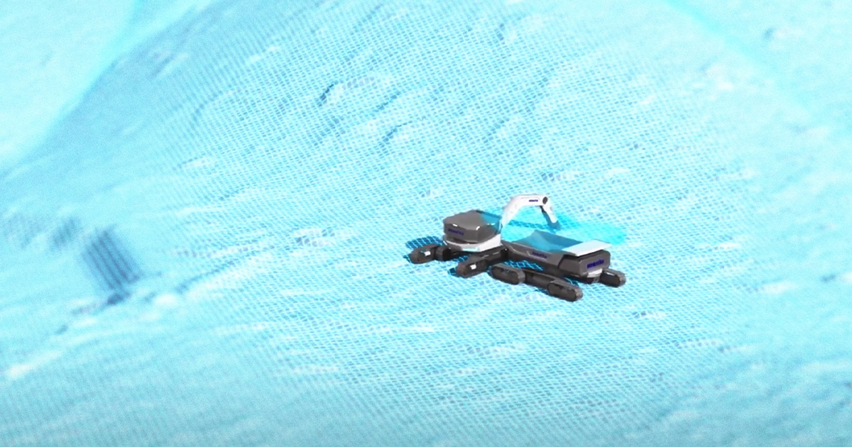 Komatsu has explored a variety of ideas to improve lunar excavation performance. One solution is to increase the length of contact between the machine and the lunar surface.