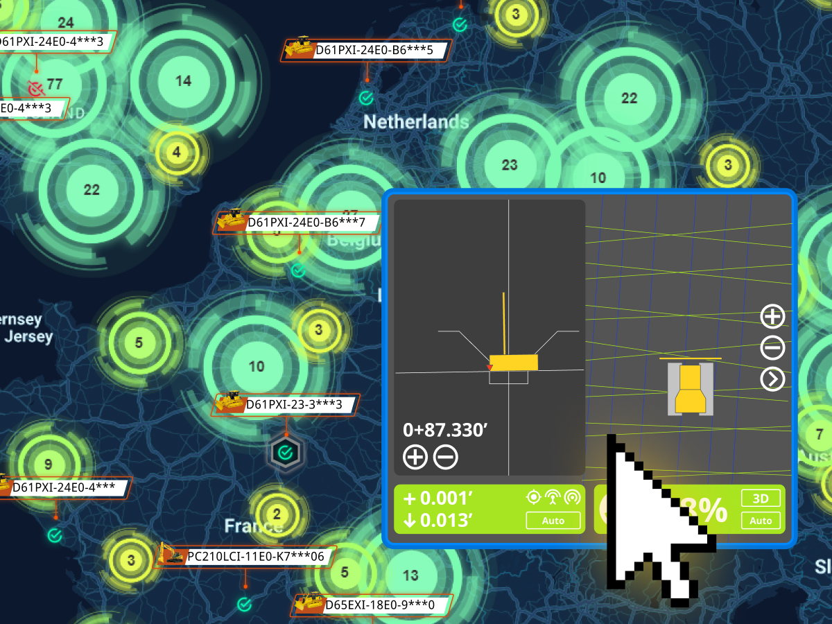 Smart Construction Remote is a cloud-based solution that enables users to access and control both Komatsu and non-Komatsu machine guidance and control systems remotely. It enhances troubleshooting speed and efficiency, reducing downtime and improving operational performance. Additionally, design files can be sent to machines even when they are turned off, ensuring seamless coordination between the office and the field.