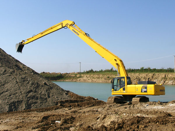 Komatsu Super Long Front excavators are suitable for digging and slope finishing. They feature an extended boom and arm and a special counterweight for long reach working.