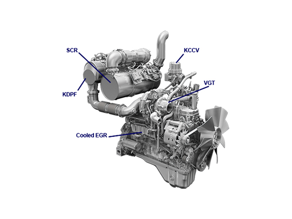 Cooled EGR is a technology well-proven in current Komatsu engines. The increased capacity of the EGR cooler now ensures very low NOx emissions and a better engine performance.