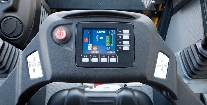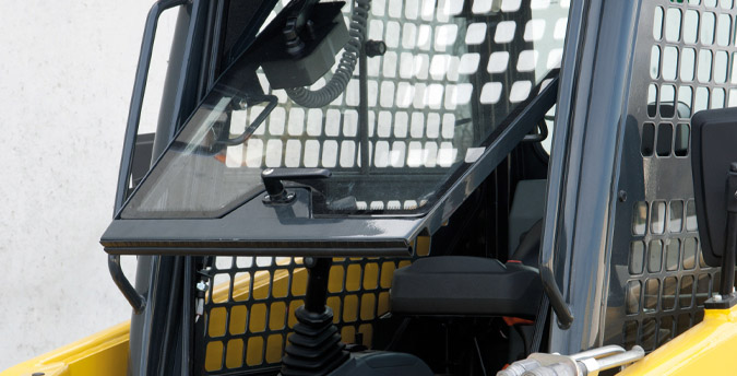 La cabine spacieuse, avec un accès large et un siège confortable, a été conçue de façon ergonomique pour offrir un niveau de confort inégalé pour cette catégorie de machines.