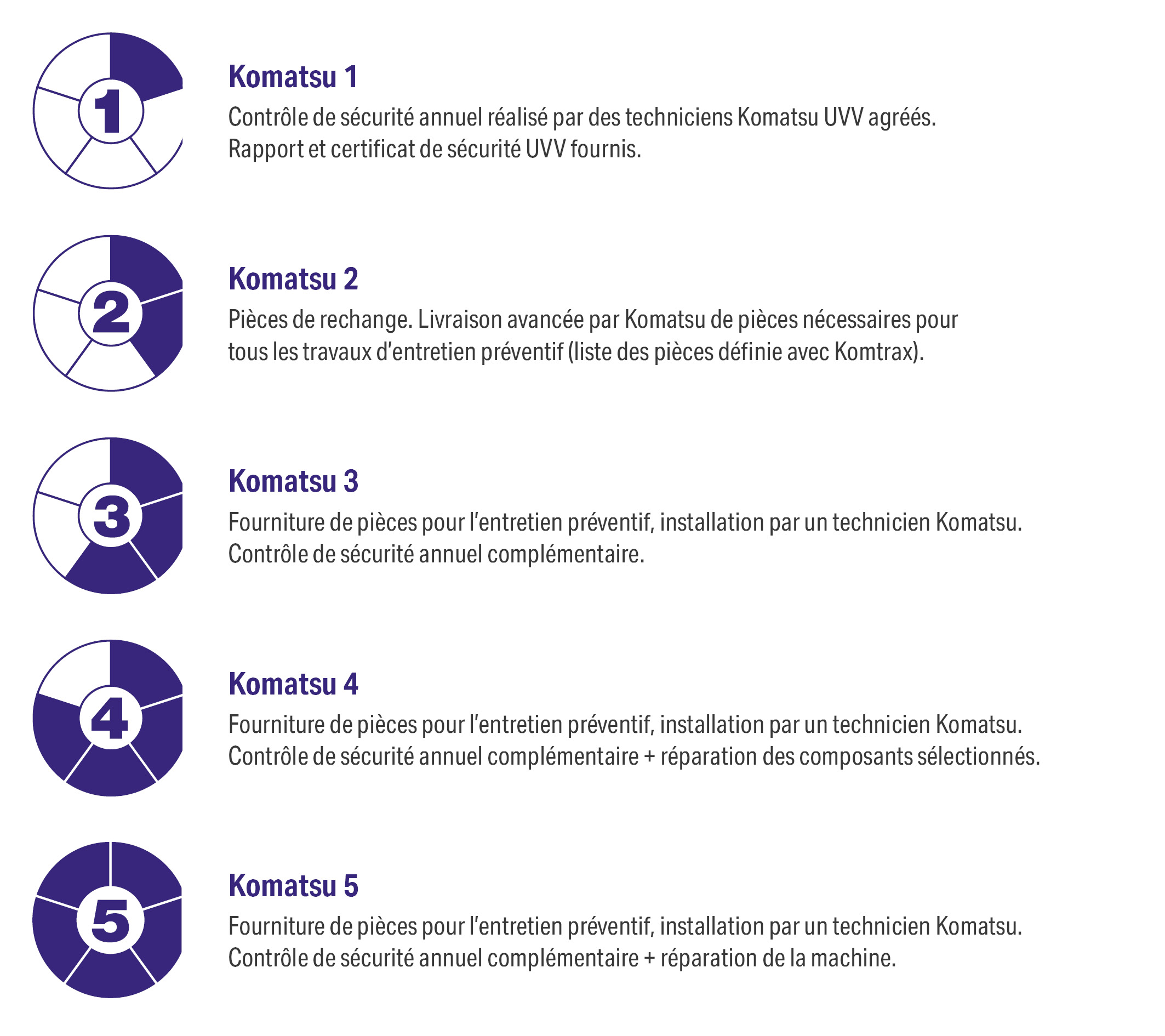 Komatsu Europe propose quatre types de contrats S.A.V. :