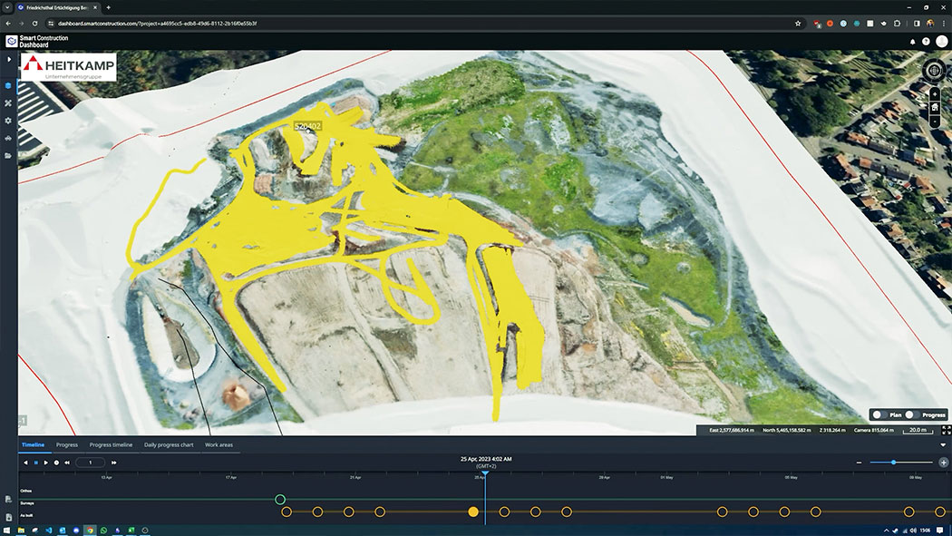 « Je dispose donc d’une modélisation quotidienne du terrain, créée par mon équipement, dit Motsch. Je sais d’emblée où j’en suis. Quel matériel doit encore être livré ? Qu’est-ce qui a été consolidé et où ? Combien de matériaux manquent encore dans cette zone pour savoir si je peux atteindre l’objectif des travaux ? »