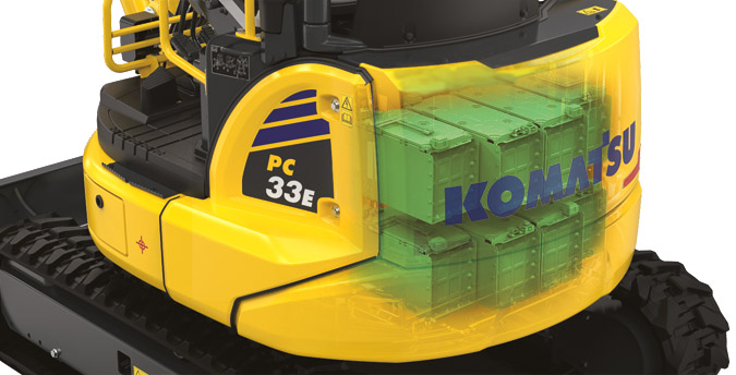 La mini-pelle électrique de 3,5 tonnes PC33E-6 dotée d'une batterie lithium-ion. Ce modèle repousse les limites d’une utilisation sans émission grâce à des performances exceptionnelles et à des systèmes de sécurité hors du commun.