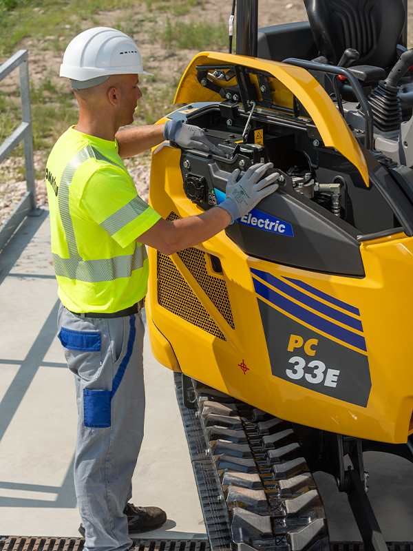 E-Support è un programma di assistenza che viene fornito di serie con il nuovo miniescavatore elettrico PC33E-6 di Komatsu. Copre the aspetti: manutenzione programmata in fabbrica, eseguita da tecnici specializzati Komatsu con ricambi originali Komatsu, una garanzia aggiuntiva sulla macchina e una garanzia per specifici componenti del treno di potenza elettrico. Contatta il tuo distributore locale Komatsu per maggiori dettagli su termini e condizioni contrattuali.