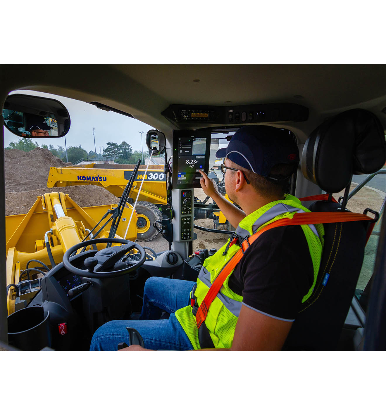 Il collaudato sistema Load-Pilot di Komatsu per il controllo del carico è stato rinnovato in termini di funzionalità e controllabilità. Poiché tutti gli elementi importanti sono visualizzati sul monitor, è possibile eseguire la regolazione sullo schermo in modo semplice, con pochi click, senza perdersi nel menù della macchina. La chiara rappresentazione di tutte le funzioni è assolutamente intuitiva. Dati di carico precisi e veloci grazie alla perfezionata funzione di auto pesatura, definizione del materiale a piacere e display indicante produttività ed efficienza per i diversi materiali consentono all’operatore di lavorare senza preoccupazioni.