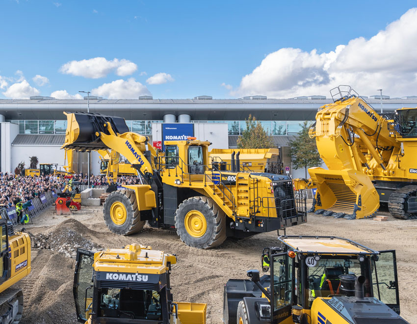 Altro fiore all'occhiello sono le nuove pale gommate WA475-11 e WA485-11: sviluppate da Komatsu Ltd. in Giappone e prodotte nella sede di Hannover. Questi due modelli si distinguono per i bassissimi livelli di consumo di carburante grazie alla elevata coppia di potenza del motore con trasmissione idraulico-meccanica (HMT). Sono inoltre caratterizzate da un carico utile e da una capacità della benna notevolmente maggiori rispetto ai modelli precedenti e soddisfano i requisiti della normativa EU Stage V sulle emissioni grazie al filtro antiparticolato diesel a lunga durata. I visitatori potranno provare la cabina, che è spaziosa ed ergonomica, oltre a essere dotata di comandi regolabili e di sedile ammortizzato ad aria.